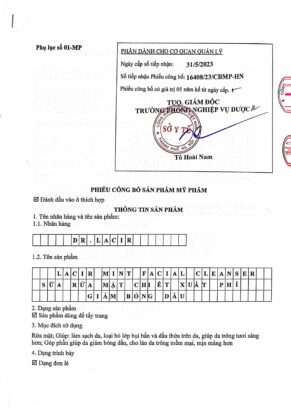 • Số tiếp nhận phiếu công bố: 16408/23/CBMP-HN