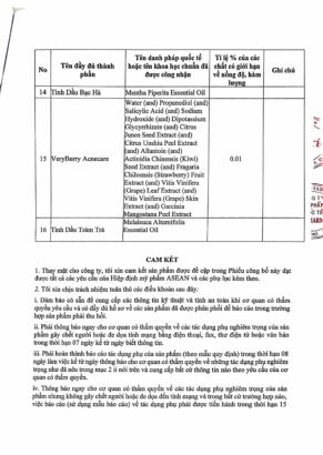 Lưu ý: Sản phẩm này là mỹ phẩm – không phải là thuốc, không có tác dụng thay thế thuốc chữa bệnh