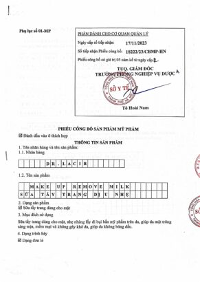 (Phiếu công bố mỹ phẩm Makeup Remove Milk)